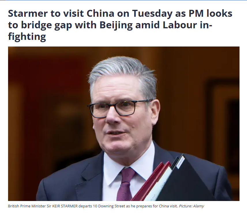 應國務院總理李強邀請,英國首相斯塔默將于1月28日至31日對中國進行正式訪問。歐洲媒體對此給予強烈關(guān)注。多家歐洲媒體報道稱,這是2018年以來,英國首相首次對中國的訪問。