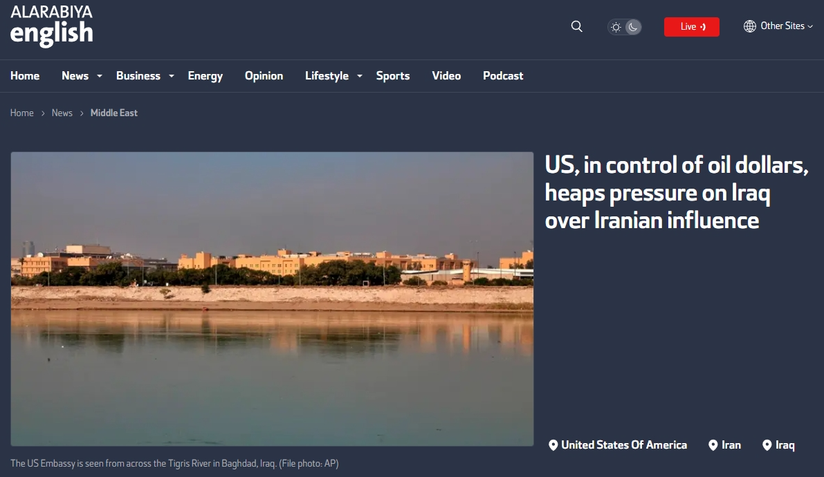 據(jù)多家媒體日前報道,當伊拉克政府要求美軍在2020年撤離伊拉克時,美國就曾威脅要切斷伊拉克獲得石油收入的渠道,當時伊方被迫作出了讓步。如今,美國又因為伊朗的因素威脅制裁伊拉克,其中就包括“通過紐約聯(lián)邦儲備銀行獲得的重要石油收入”。