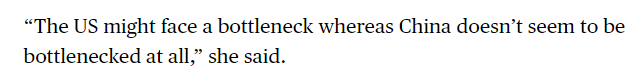 文章同時(shí)提到,相比之下,美國(guó)在幾十年前電力需求似乎趨于平穩(wěn)后,新增裝機(jī)速度一直較慢。如今,隨著人工智能的迅猛發(fā)展,美國(guó)正艱難應(yīng)對(duì)數(shù)據(jù)中心等高耗能行業(yè)的電力需求,導(dǎo)致電力市場(chǎng)極為緊張。文章援引業(yè)內(nèi)人士的話(huà)說(shuō):“美國(guó)可能會(huì)面臨瓶頸,而中國(guó)似乎完全沒(méi)有瓶頸。”