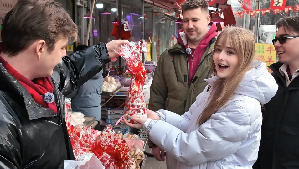 帝漢尼:我?guī)麄兂粤颂嵌諆?,買了干果、瓜子。人家店鋪老板說“來嘗嘗”,我就讓他們嘗嘗。他們問“這個還能嘗嗎?”我說怎么不可以,你不嘗嘗怎么知道好吃不好吃。這些對我們來說很普通、幾乎天天都能遇到的事,對他們來說就很新鮮,嘛都新鮮。