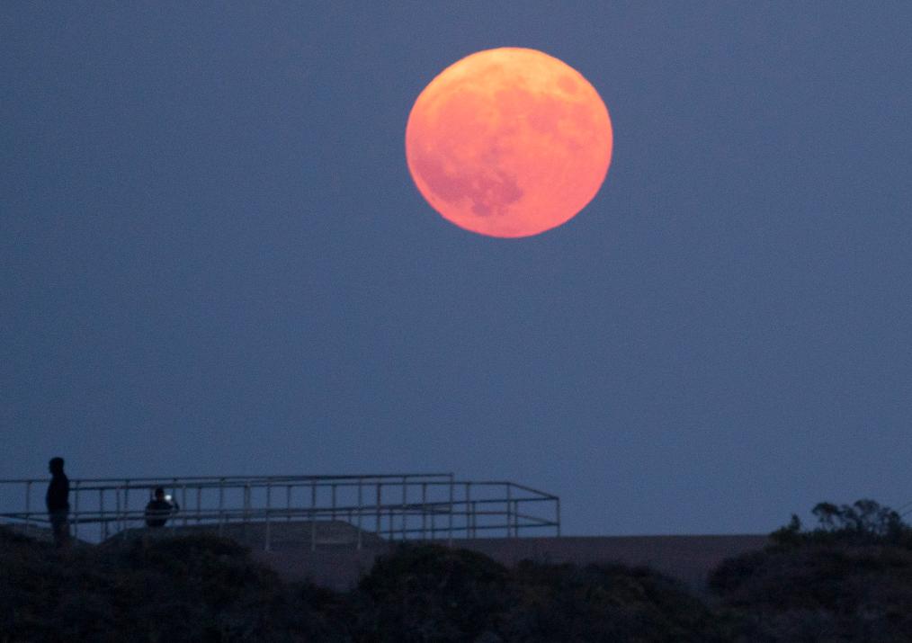 這是2023年8月30日在美國(guó)舊金山金門(mén)大橋附近拍攝的“超級(jí)月亮”。新華社發(fā)(李建國(guó)攝)