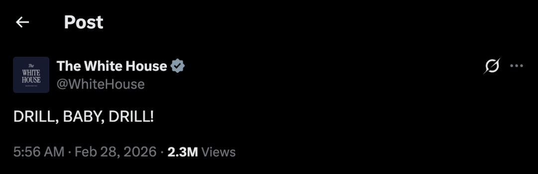 2月28日,美國和以色列宣布,對伊朗發(fā)動聯(lián)合軍事行動。同時,白宮的社交媒體賬號更新了一條動態(tài),只有簡短的一句話: