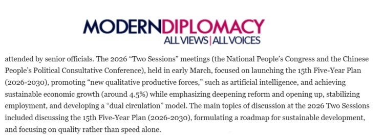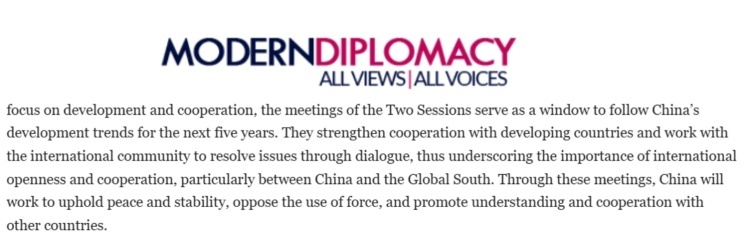 歐洲《現代外交》網站近日刊登埃及本尼蘇伊夫大學副教授納迪亞·赫爾米博士的評論文章稱,今年中國兩會重點關注發(fā)展模式創(chuàng)新與深化伙伴關系。會議議題包括通過共建“一帶一路”倡議推動“高質量發(fā)展”,深化數字經濟、基礎設施及能源領域的國際合作,為推動構建人類命運共同體提供重要平臺。