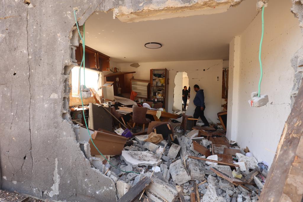 3月13日,人們在以色列北部城鎮(zhèn)扎爾齊爾一處遭伊朗導(dǎo)彈襲擊的地點(diǎn)查看。新華社發(fā)(吉爾·科恩·馬根攝)