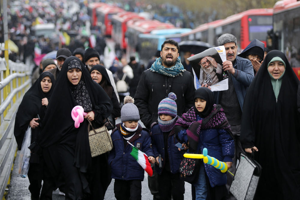 3月13日,人們在伊朗首都德黑蘭參加集會(huì)。(沙達(dá)提 攝)
