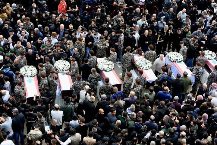 4月11日,在黎巴嫩西頓市,人們參加遭以軍空襲喪生的13名安全人員的葬禮。新華社發(fā)(阿里·哈希紹 攝)