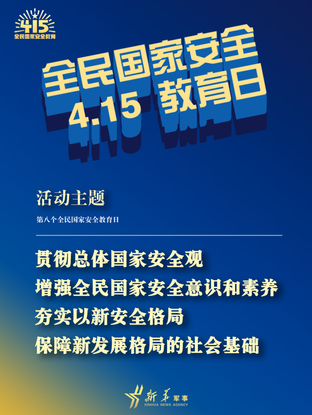 今年4月15日是第八個(gè)全民國家安全教育日。今年全民國家安全教育日的活動(dòng)主題為“貫徹總體國家安全觀,增強(qiáng)全民國家安全意識(shí)和素養(yǎng),夯實(shí)以新安全格局保障新發(fā)展格局的社會(huì)基礎(chǔ)”。