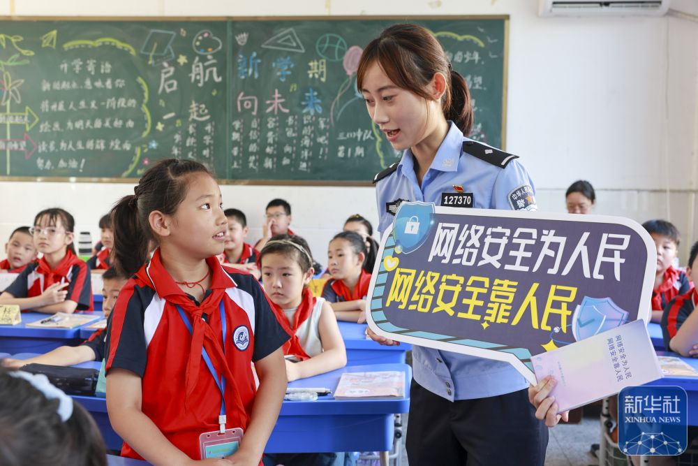9月15日,在山東省臨沂市沂南縣第三實(shí)驗(yàn)小學(xué),沂南縣公安局網(wǎng)絡(luò)安全保衛(wèi)大隊(duì)的民警給學(xué)生普及網(wǎng)絡(luò)安全知識(shí)。新華社發(fā)(王彥冰攝)