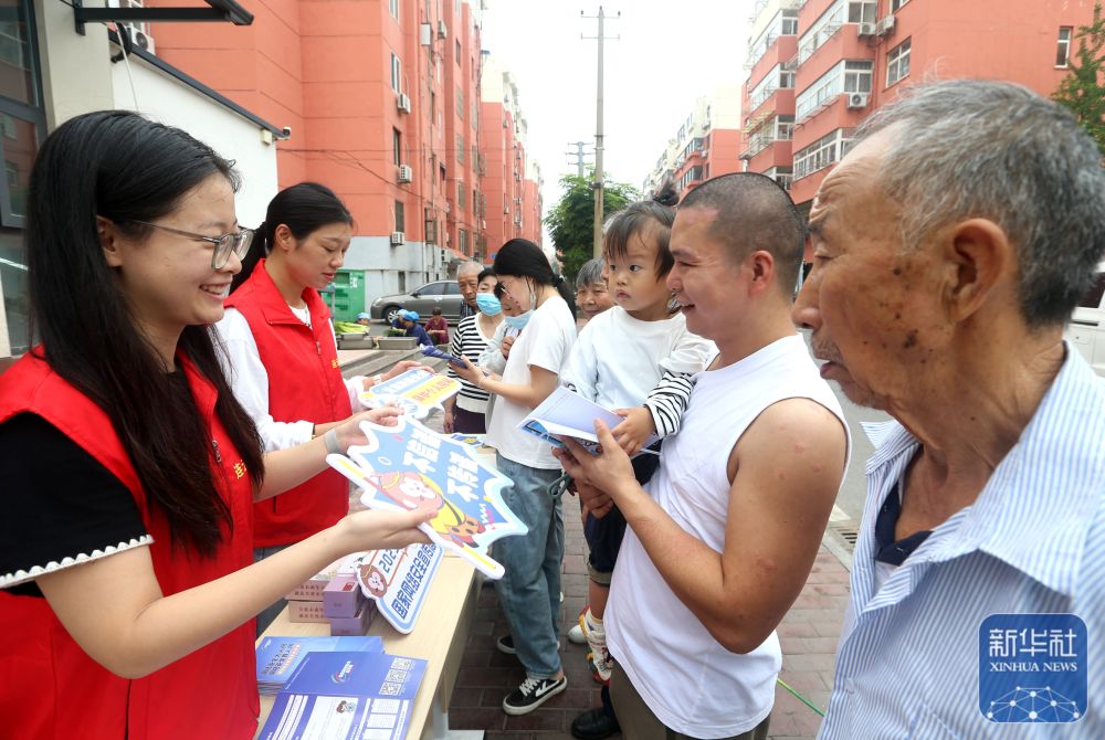 9月15日,江蘇省連云港市連云區(qū)委網(wǎng)信辦工作人員給連云區(qū)西園社區(qū)居民宣傳網(wǎng)絡(luò)安全知識(shí)。新華社發(fā)(王春攝)