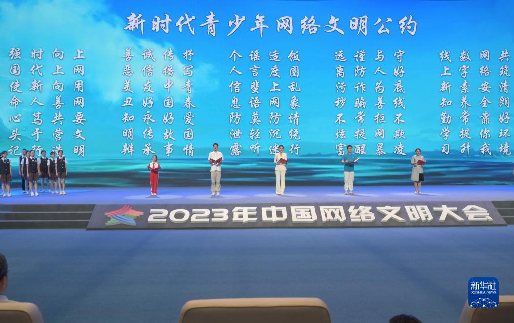 7月18日,2023年中國(guó)網(wǎng)絡(luò)文明大會(huì)主論壇發(fā)布《新時(shí)代青少年網(wǎng)絡(luò)文明公約》。新華社記者林善傳攝