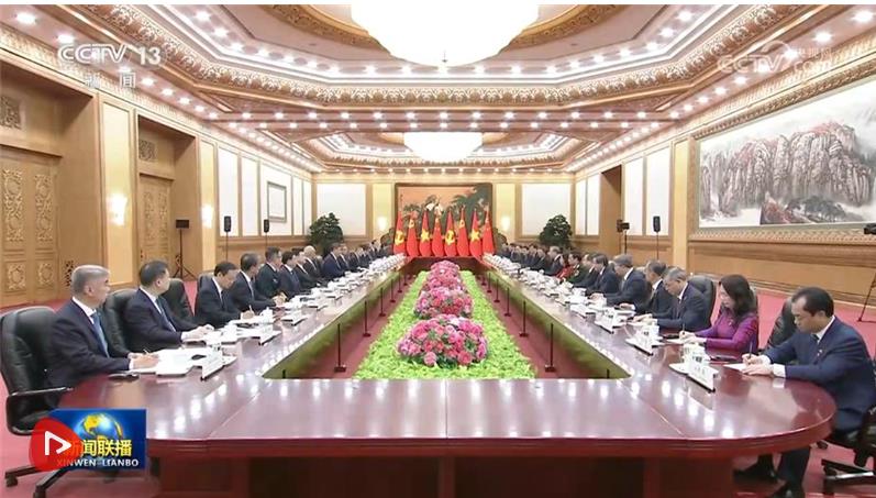 蘇林表示,這是我當(dāng)選越南國(guó)家主席后首次出訪,也正值習(xí)近平總書記、國(guó)家主席去年對(duì)越進(jìn)行歷史性訪問(wèn)一周年,充分反映了總書記同志所說(shuō)的“鄰里越走越親”。越方感謝中國(guó)共產(chǎn)黨、政府和人民對(duì)越共十四大提供的重要政治支持,愿始終同中方賡續(xù)傳統(tǒng)友誼,推動(dòng)兩國(guó)全面戰(zhàn)略合作伙伴關(guān)系和具有戰(zhàn)略意義的命運(yùn)共同體不斷發(fā)展。越方祝賀中國(guó)勝利完成“十四五”規(guī)劃并取得歷史性成就,相信中方將順利實(shí)施“十五五”規(guī)劃,不斷推進(jìn)高質(zhì)量發(fā)展和社會(huì)主義現(xiàn)代化建設(shè),如期實(shí)現(xiàn)第二個(gè)百年奮斗目標(biāo),并成為世界和平發(fā)展的支柱力量和首要?jiǎng)恿Α?/p>
