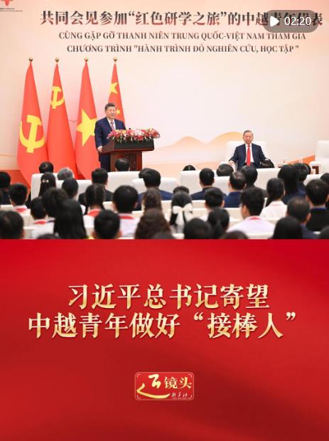 2025年4月15日,對越南進(jìn)行國事訪問期間,習(xí)近平總書記在會(huì)見中越人民大聯(lián)歡活動(dòng)代表時(shí)宣布,中方將在今后3年邀請?jiān)侥锨嗄旮叭A開展“紅色研學(xué)之旅”。一年來,已有1000余名越南各界青年與中國青年一道,沿著兩黨兩國老一輩領(lǐng)導(dǎo)人的革命足跡,共同探尋中越友好的紅色基因,感受中國式現(xiàn)代化的萬千氣象。