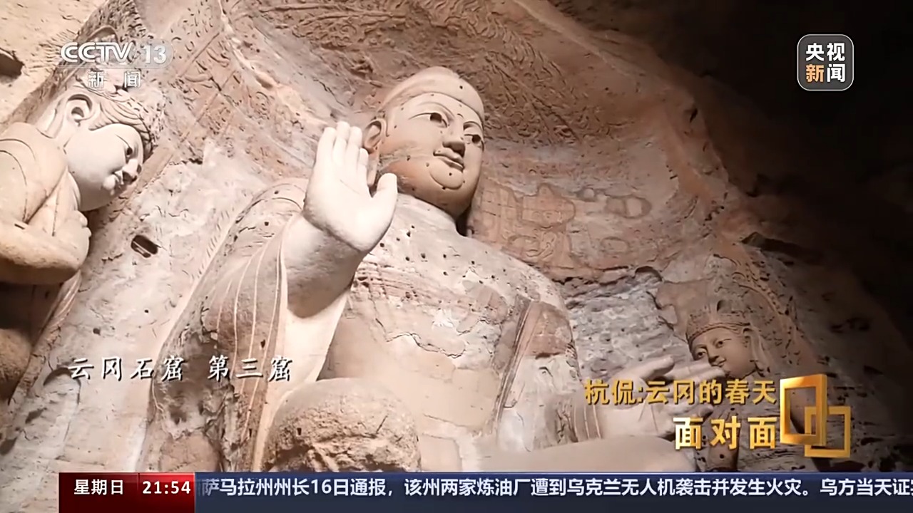 3月的山西大同,乍暖還寒,到訪云岡石窟的游客依舊熱情不減。跟隨云岡研究院院長杭侃,我們一起回望這段跨越1500多年的歷史。云岡石窟的開鑿始于北魏時期,它是佛教傳入中國后,第一次以皇家的力量主持開鑿的石窟群,有“真容巨壯”“窮諸巧麗”之譽。云岡石窟現(xiàn)存主要洞窟45個,附屬洞窟209個,大小造像5.9萬余尊,2001年被聯(lián)合國列入世界遺產(chǎn)名錄。第20窟露天大佛是云岡石窟的標志性景觀,然而,我們并沒有在這里過多停留,杭侃把我們帶到了他更感興趣的另一個地方。