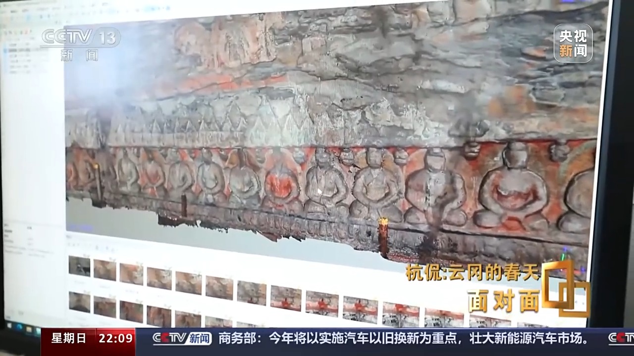 杭侃:因為敦煌起步早,到現(xiàn)在都是我們學習的榜樣。但是敦煌它正是因為起步早,可能我們現(xiàn)在技術迭代比較快。所以從技術迭代的角度來說我們并不落后。我們現(xiàn)在的精度已經(jīng)到了0.03毫米了,但是那樣需要的算力是非常大的。我們這有一個超算中心,超算中心是什么概念?就是你看到的一個洞窟的運算能力,要和一個中等城市的,我們叫智慧城市,那個量是一樣的。云岡它是一個皇家工程,所以那個像都特別大,敦煌它很多洞窟比較小,另外敦煌它的壁畫非常精彩,但是壁畫是二維的,所以相對掃描起來相對來說容易,但是我們這個地方它一個是大,第二個就是雕刻的手法多。所以像你看到的第六窟,我們到現(xiàn)在都沒有拿得出來,大家都能認可的采集方案。