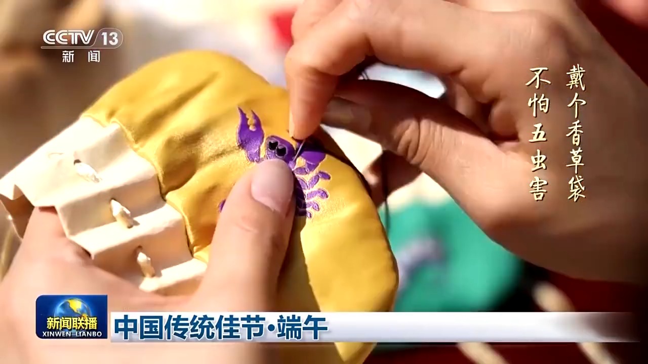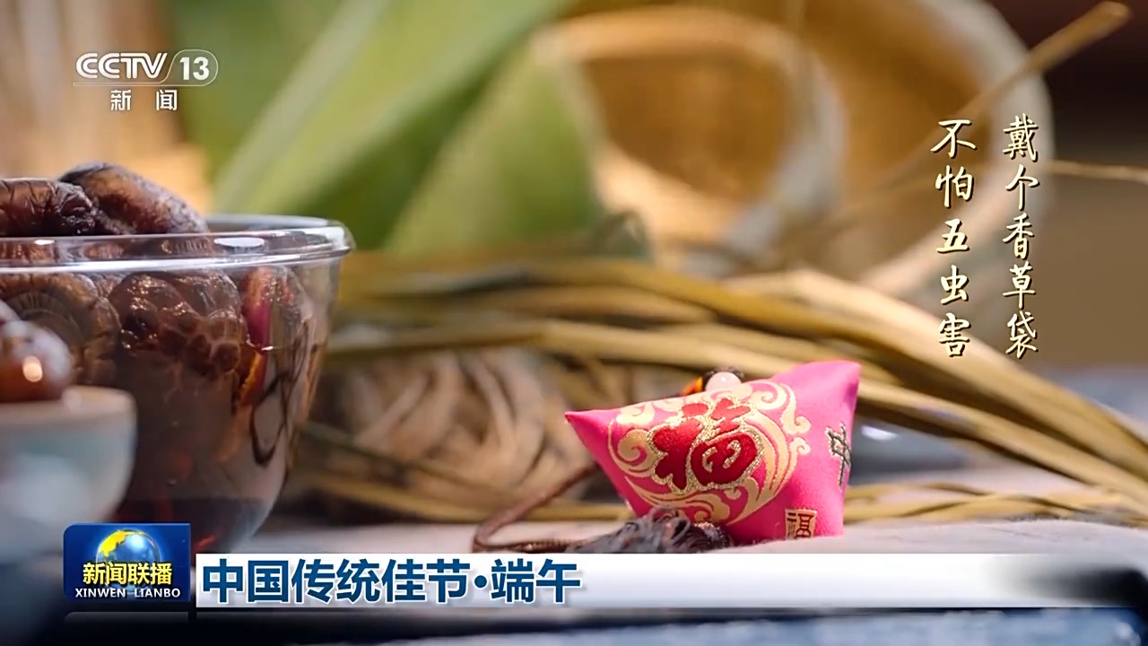 端午節(jié)還有佩香囊的傳統(tǒng)習(xí)俗。香囊里裝上中草藥,可以提神醒腦。