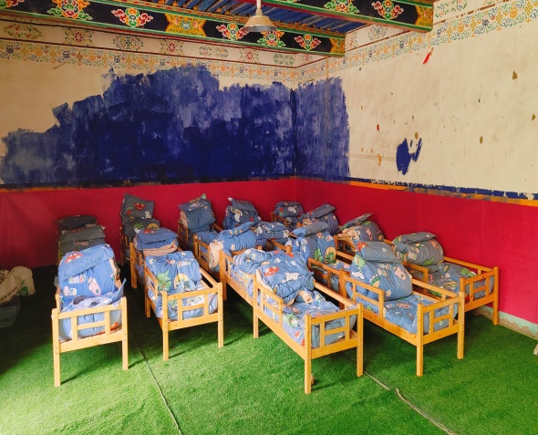 金點(diǎn)子,抓實(shí)干。自階段性入戶工作開(kāi)展以來(lái),駐西嘎村第十三批工作隊(duì)認(rèn)真了解入戶時(shí)發(fā)現(xiàn)的村幼兒園改造未能推進(jìn)的問(wèn)題,現(xiàn)場(chǎng)走訪村幼兒園,排查村幼兒園用火、用電、用氣、食品衛(wèi)生安全隱患。在交談中,兩位教師談及幼兒園房間老舊、水泥地板凹凸不平,導(dǎo)致幼兒無(wú)法午休的問(wèn)題,工作隊(duì)第一時(shí)間請(qǐng)示領(lǐng)導(dǎo),現(xiàn)場(chǎng)勘察房間形狀與大小,駐村隊(duì)員自發(fā)購(gòu)買(mǎi)并鋪就64.2平米防滑草坪地毯,以改善園內(nèi)22名幼兒生活環(huán)境,給孩子們創(chuàng)建了相對(duì)舒適、干凈的午休環(huán)境。村幼兒園教師次珍表示:“此次活動(dòng)極大改善了孩子們的生活條件,感謝人行日喀則市分行駐村工作隊(duì)一直以來(lái)對(duì)村幼兒園工作的關(guān)心?!?/p>