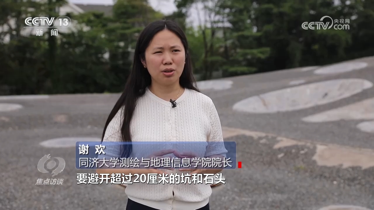同濟大學(xué)測繪與地理信息學(xué)院院長謝歡:“對于著陸避障來說,主要在乎的是地面上是不是平坦。要避開超過20厘米的坑和石頭,所以我們在場地里面仿真了不同的場景,大大小小的坑和不同大小的石塊,盡可能還原在月球表面上可能會威脅安全著陸的場景?!?/p>