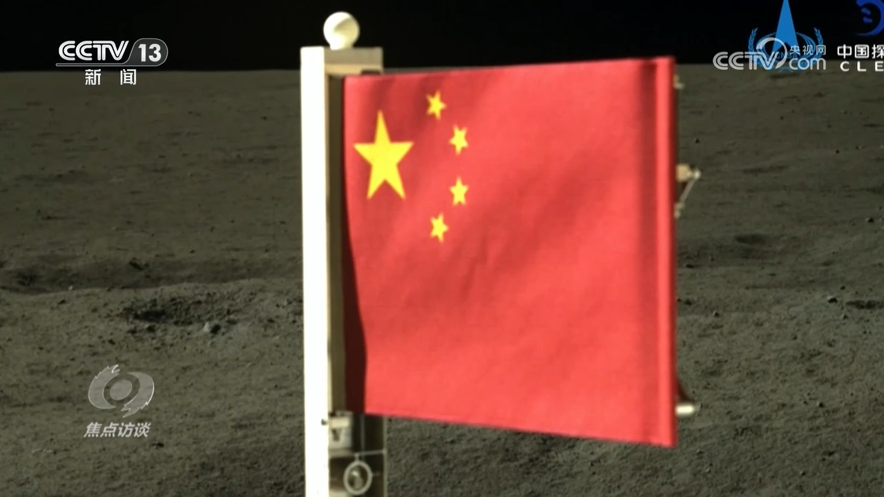 中國航天科技集團賈曉宇:“最開始選采樣點只是根據(jù)表面看到的圖形選出來的,我們會根據(jù)翻出來的樣品動態(tài)調(diào)整采樣點的位置,‘中’字的斜收筆和‘中’字的頭部其實就是這樣產(chǎn)生的。本來我們可能除了‘中’字之外還會多鏟幾鏟,但是最后發(fā)現(xiàn)‘中’字的最后一筆形成以后,正好這個樣品容器也幾乎要滿了。各種意外催成了‘中’字的產(chǎn)生,可能注定中國要在月球上留下自己的印記。”