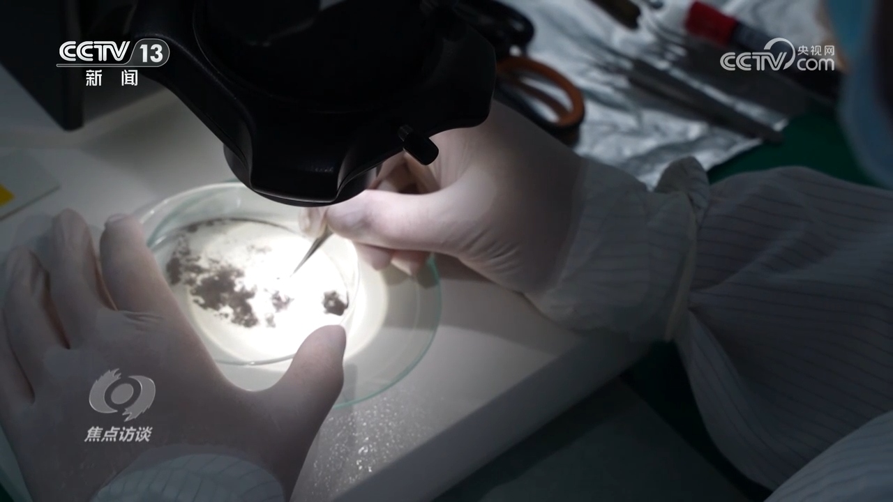 科研團隊拿到月壤后的第一步是樣本制備,挑選工作要在顯微鏡下進行,手部任何一點多余的抖動都會導(dǎo)致顆粒無法被有效挑選,后續(xù)研究也就無從談起。