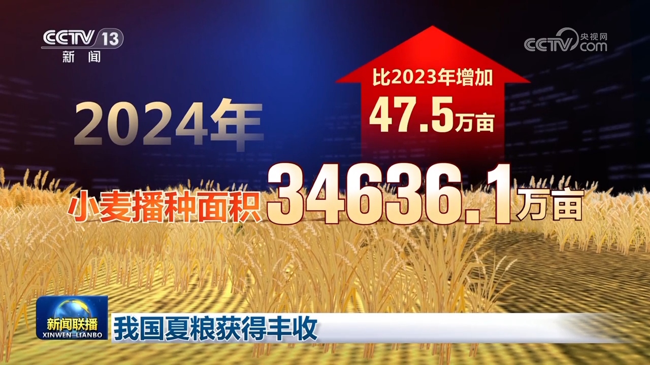 國(guó)家統(tǒng)計(jì)局7月12日發(fā)布的數(shù)據(jù)顯示,2024年,全國(guó)夏糧總產(chǎn)量為14978萬噸,合2996億斤,比2023年增加72.5億斤,增長(zhǎng)2.5%。全國(guó)夏糧獲得豐收。