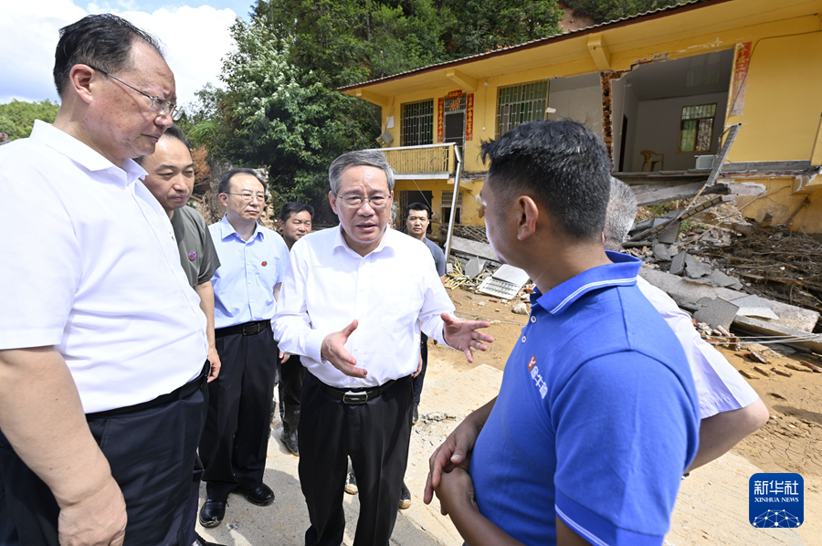 8月1日,中共中央政治局常委、國務(wù)院總理李強(qiáng)在湖南郴州看望慰問受災(zāi)群眾,檢查指導(dǎo)防汛工作。這是李強(qiáng)在資興市州門司鎮(zhèn)燕窩村實地察看災(zāi)情,走訪受災(zāi)村民。新華社記者 岳月偉 攝
