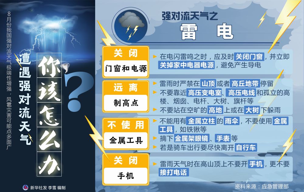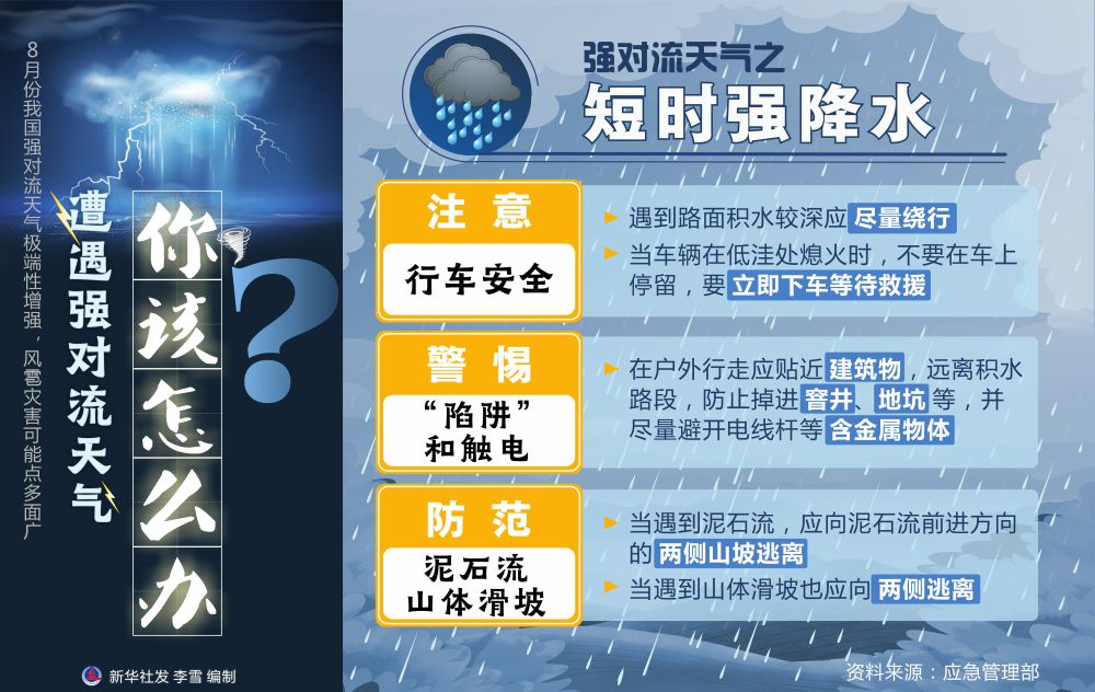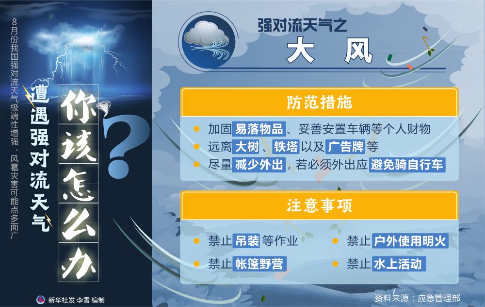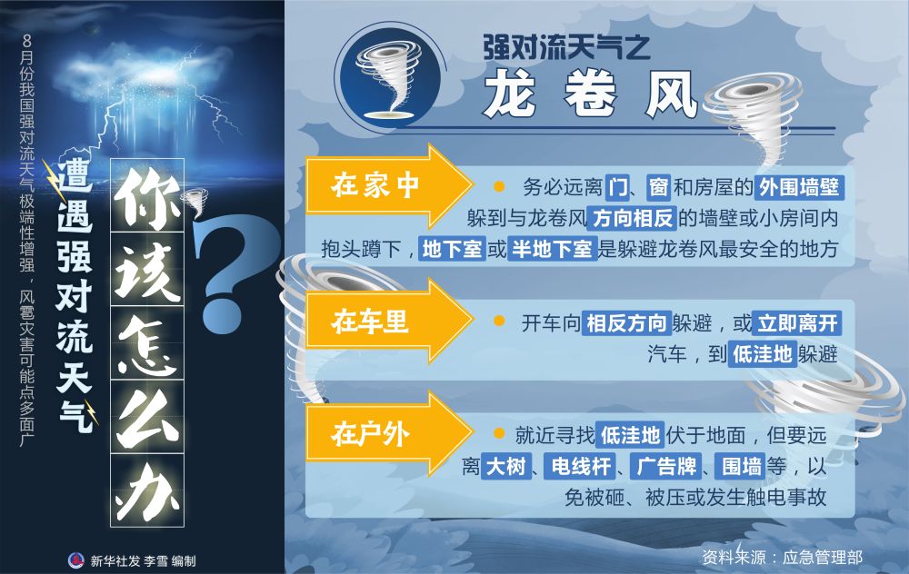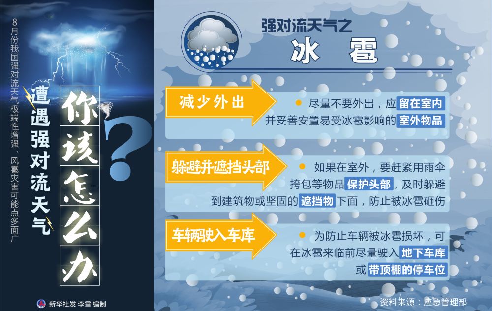 從應(yīng)急管理部獲悉,多方會商研判認(rèn)為,8月份中國強(qiáng)對流天氣極端性增強(qiáng),風(fēng)雹災(zāi)害可能點(diǎn)多面廣。遭遇強(qiáng)對流天氣,你該怎么辦?