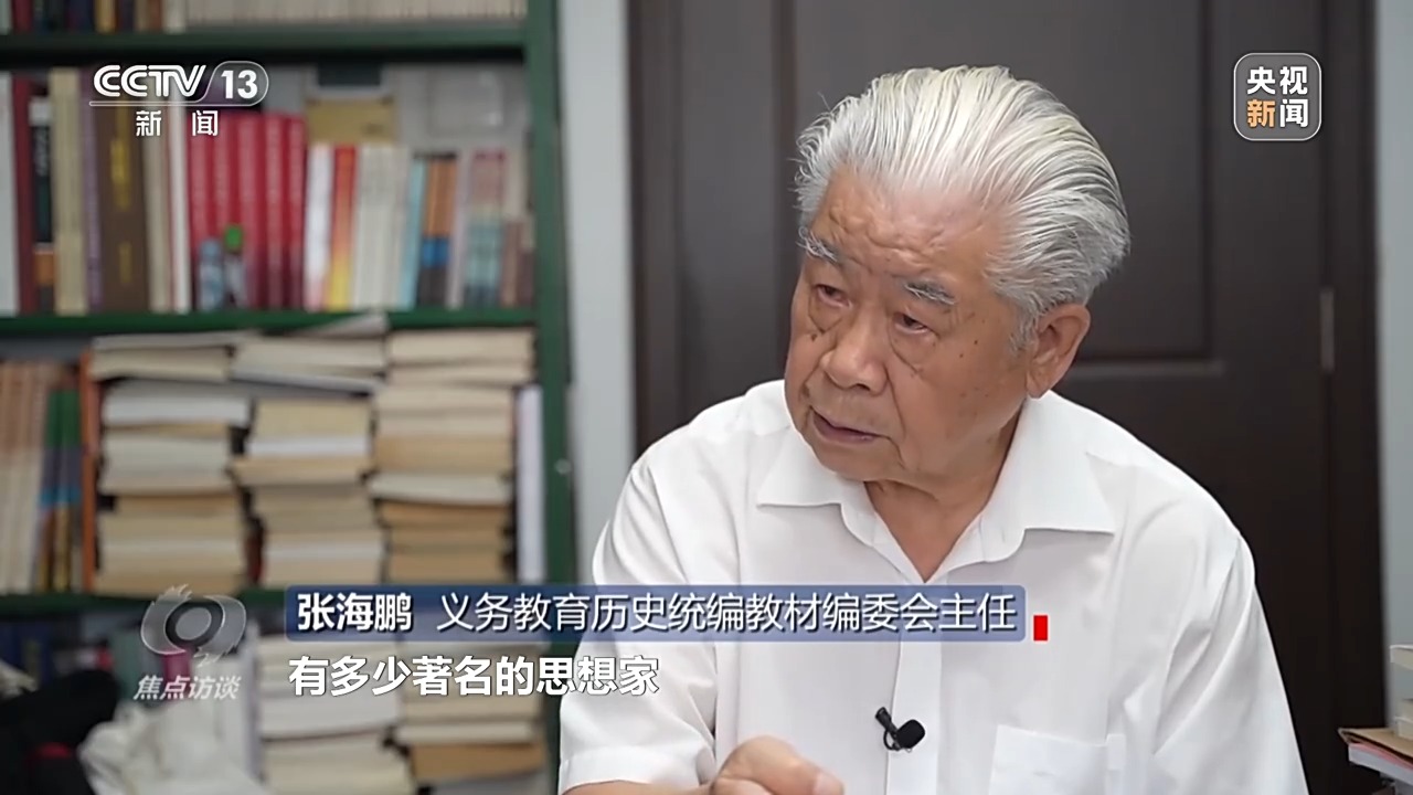 義務(wù)教育歷史統(tǒng)編教材編委會(huì)主任 張海鵬:講我們中國(guó)歷史上每一代有多少著名的思想家,有多少著名的政治家、軍事家、戰(zhàn)略家、科學(xué)家,對(duì)人類有貢獻(xiàn)的發(fā)明創(chuàng)造、文學(xué)藝術(shù)。這就是告訴我們,中華的文化是優(yōu)秀的,是值得我們熱愛(ài)的。
