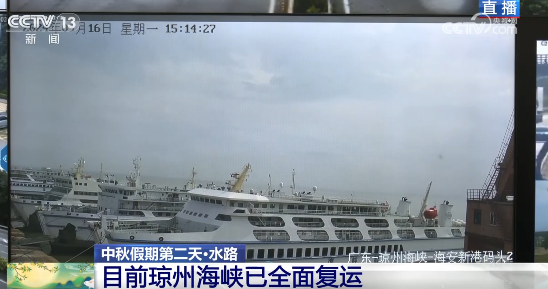 接下來看到的是瓊州海峽??谛潞8劭蜐L運輸裝載現(xiàn)場的畫面,目前車輛和人員正在有序排隊上船。臺風(fēng)“摩羯”過后,在海事、客滾運輸企業(yè)等多方共同努力下,目前瓊州海峽客滾運輸航線已全面復(fù)運,運力充足。海南海事部門已開啟客滾船專項安檢活動,并且強化船舶現(xiàn)場監(jiān)督檢查,防范船舶“帶病”營運,全力保障中秋假期重點時段瓊州海峽水上安全形勢平穩(wěn)。