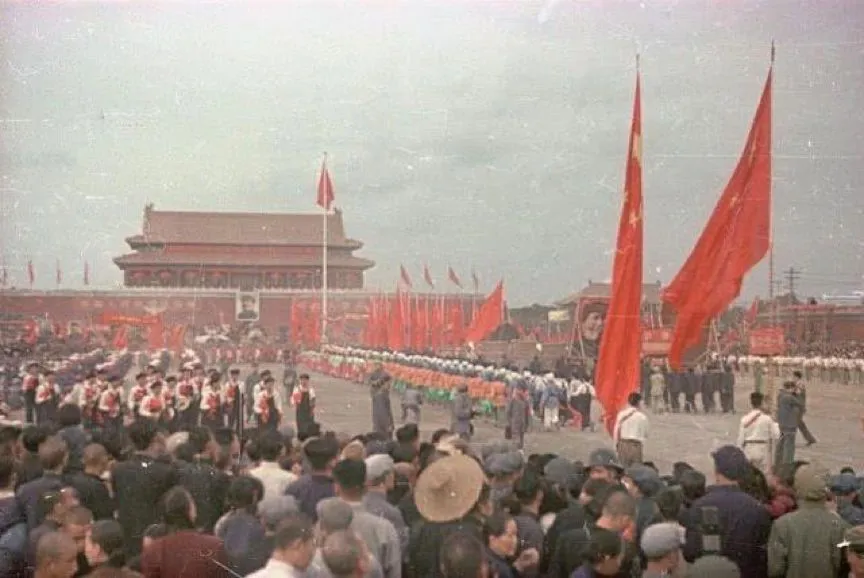 毛主席在天安門(mén)城樓上向世界莊嚴(yán)宣告: