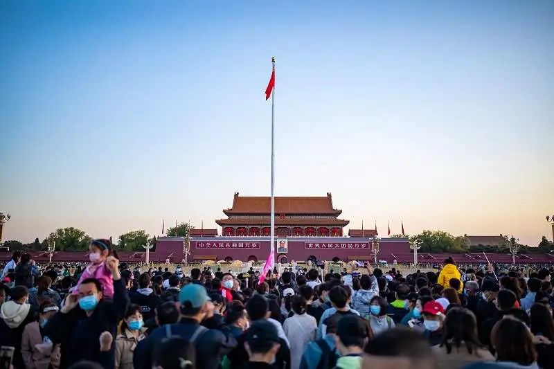來(lái)自全國(guó)各地的觀(guān)眾聚集于天安門(mén)廣場(chǎng)