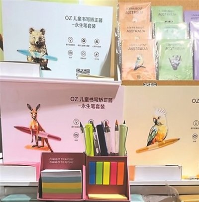 在澳大利亞CPG集團(tuán)董事長(zhǎng)曹佩青位于消費(fèi)品展區(qū)的展臺(tái),印有考拉、袋鼠、袋熊等澳大利亞動(dòng)物圖案的擺件、筆筒、收納籃琳瑯滿目,吸引著年輕觀眾駐足。今年,她帶來(lái)文創(chuàng)品牌“SPACE18”的新品——澳大利亞動(dòng)物系列永生筆套裝?!拔覀兿Mㄟ^(guò)這套富有澳大利亞特色動(dòng)物元素的文具,把綠色環(huán)保、熱愛(ài)自然的理念傳遞給中國(guó)的孩子們?!辈芘迩嗾f(shuō)。