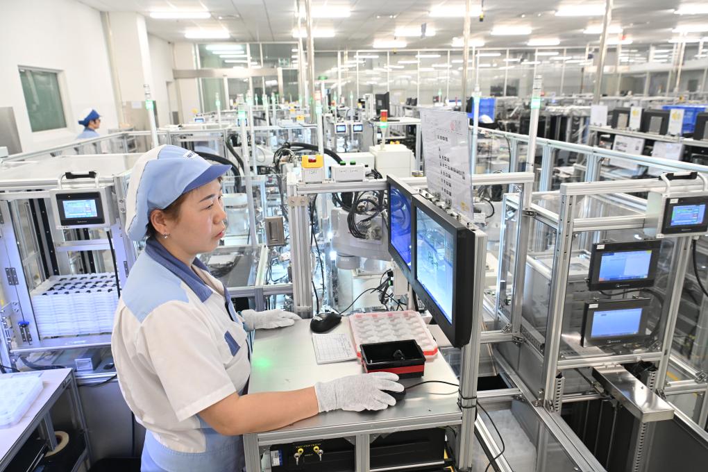 10月8日,江蘇省太倉(cāng)市阿爾派電子有限公司的員工在裝配汽車(chē)音響。新華社發(fā)(計(jì)海新 攝)