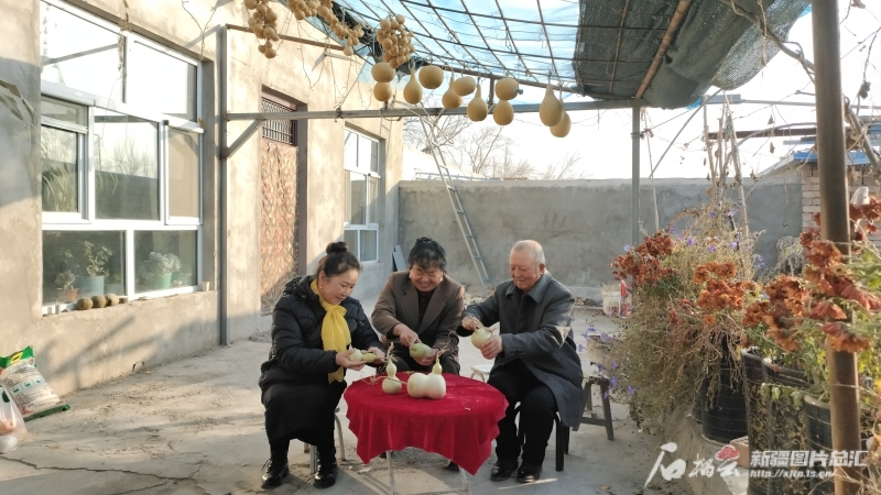11月19日,焉耆回族自治縣永寧鎮(zhèn)下岔河村陽光明媚。村民陳新萍忙完家務(wù),早早來到同村的帕提古麗·艾沙家,兩人開始一起摘葫蘆、裝筐、去皮,為趕制下一批烙畫葫蘆做準備。