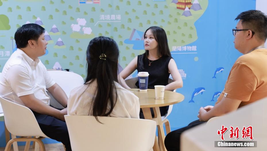 在臺灣大學生到廣州實習活動的開營儀式上當主持人,以自身經歷分享給臺灣各大高校的學弟學妹們,吳宥璇既是主持人,也是過來人。臺下的年輕學子看著這位學姐,身上有許多靚麗的標簽,“美國名?!薄皠?chuàng)業(yè)達人”“年輕有為”,每一個都令人向往,但故事的開頭,大家都不知道,這位只身闖大陸的學姐,卻被家人禁止來到大陸。圖為廣東廣州,吳宥璇在廣州市白云區(qū)匯龍海峽兩岸青年創(chuàng)業(yè)基地里和同事交流。