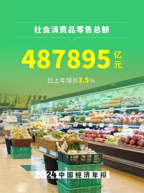 5、社會消費(fèi)品零售總額487895億元,比上年增長3.5%。