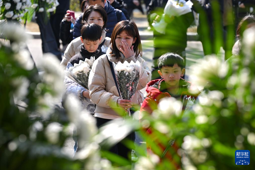 2月10日,人們在武昌殯儀館大廳外排隊(duì)等待送別黃旭華院士。