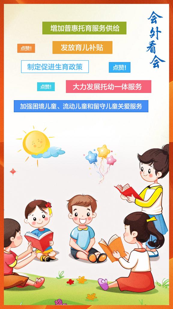 孩子是祖國的花朵。制定促進(jìn)生育政策,發(fā)放育兒補(bǔ)貼,大力發(fā)展托幼一體服務(wù),增加普惠托育服務(wù)供給……今年政府工作報(bào)告中關(guān)注孩子的這些提法,會外群眾怎么看?