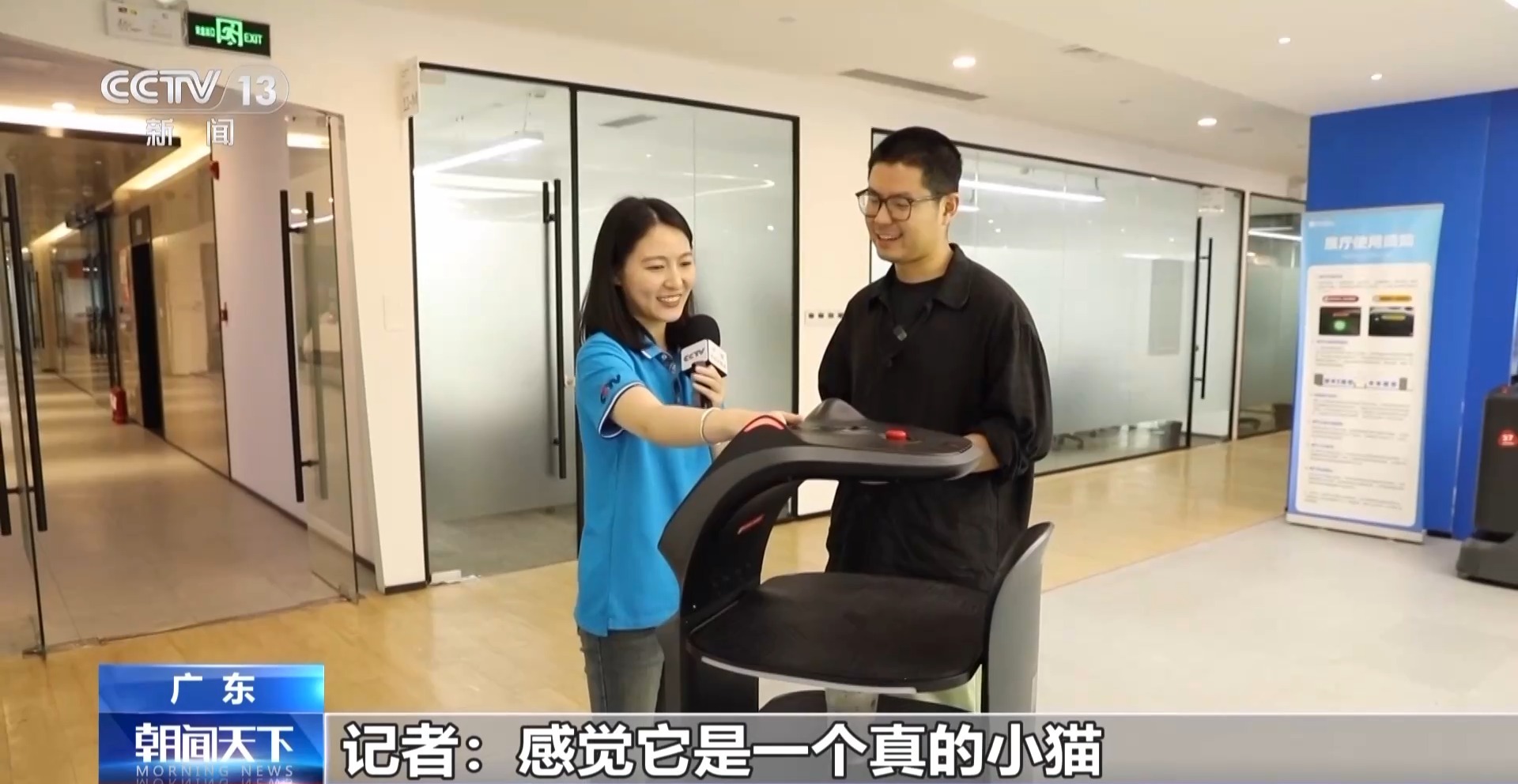 深圳普渡科技首席技術(shù)官 郭璁:摸耳朵,它會有一些不同的表情會出現(xiàn)。能給客戶提供兩種價值,第一種是功能價值,它能夠真正幫客戶解決一些問題;第二是情緒價值,消費(fèi)者看到這些機(jī)器人之后覺得它很有趣。