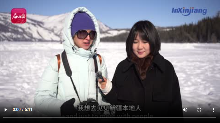 受邀做客本期《InXinjiang》欄目訪談的,是來自白俄羅斯的記者瑪麗娜。這是她第二次到新疆,走在喀納斯湖冰面上,她被眼前的美景和當(dāng)?shù)刎S富多彩的文化活動深深吸引。瑪麗娜難掩內(nèi)心歡喜:“現(xiàn)代化基礎(chǔ)設(shè)施與自然美景相得益彰,這是我喜歡新疆的理由?!?/p>