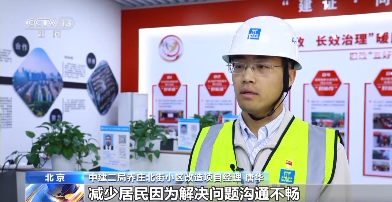 中建二局喬莊北街小區(qū)改造項(xiàng)目經(jīng)理 唐華:借鑒物業(yè)式的管理,想出來(lái)的這種施工樓棟管家服務(wù)模式,減少居民因?yàn)榻鉀Q問(wèn)題溝通不暢導(dǎo)致的一些投訴。