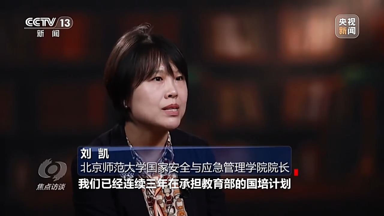 北京師范大學(xué)國(guó)家安全與應(yīng)急管理學(xué)院院長(zhǎng) 劉凱:我們已經(jīng)連續(xù)三年承擔(dān)教育部的國(guó)培計(jì)劃。國(guó)培計(jì)劃就是給全國(guó)的中小學(xué)教師講授國(guó)家安全相關(guān)的基本知識(shí),等他們回到自己的學(xué)校,在他們?nèi)粘J谡n的時(shí)候,就能夠把國(guó)家安全的知識(shí)融入數(shù)學(xué)課程、物理課程,包括其他一些課程中,這是一個(gè)非??沙掷m(xù)的路徑。