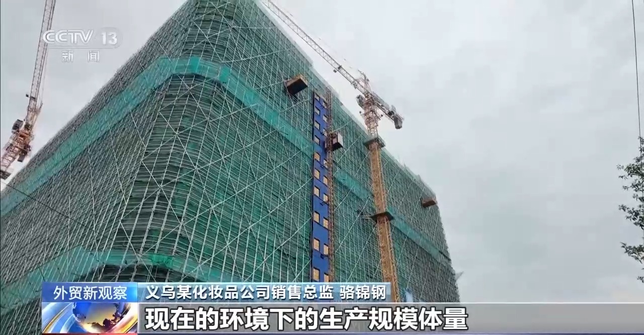 義烏某化妝品公司銷售總監(jiān) 駱錦鋼:我們這個(gè)園區(qū)幾乎是每個(gè)工廠都在改擴(kuò)建,主要是因?yàn)樵瓉?lái)的老舊廠房已經(jīng)是不適合現(xiàn)在的環(huán)境下的生產(chǎn)規(guī)模體量,根據(jù)現(xiàn)在的復(fù)雜環(huán)境,在練內(nèi)功,所以未來(lái)的企業(yè)會(huì)打造成智能化、數(shù)字化更高端的這種生產(chǎn)型企業(yè)。