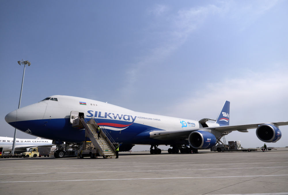 2025年4月2日,一架阿塞拜疆絲綢之路西部航空公司的貨機(jī)??吭卩嵵菪锣崌H機(jī)場停機(jī)坪上。新華社記者 李嘉南 攝