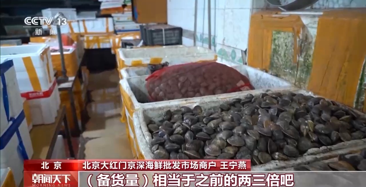北京大紅門(mén)京深海鮮批發(fā)市場(chǎng)商戶(hù) 王寧燕:根據(jù)“五一”的情況,扇貝、生蠔這種適合聚餐的,我們會(huì)多備一點(diǎn),備貨量相當(dāng)于之前的兩三倍吧。