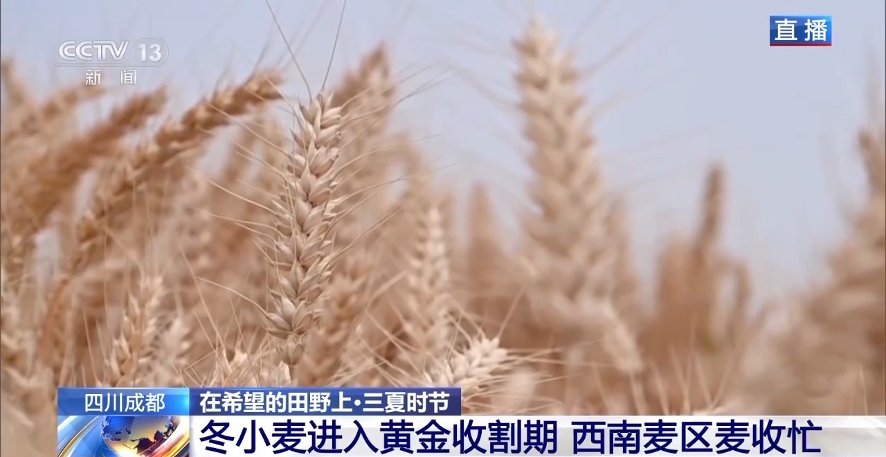 我國是全球最大的小麥生產(chǎn)國,每年的5月中旬至6月是冬小麥的黃金收割期,率先開鐮收割的是西南麥區(qū),然后是長江中下游麥區(qū)、黃淮海麥區(qū)、西北麥區(qū)。西南麥區(qū)冬小麥面積1500萬畝左右、占我國冬小麥面積的4.5%??偱_央視記者蔣樹林在西南麥區(qū)的四川天府糧倉麥?zhǔn)宅F(xiàn)場,來連線他看看現(xiàn)場的情況↓