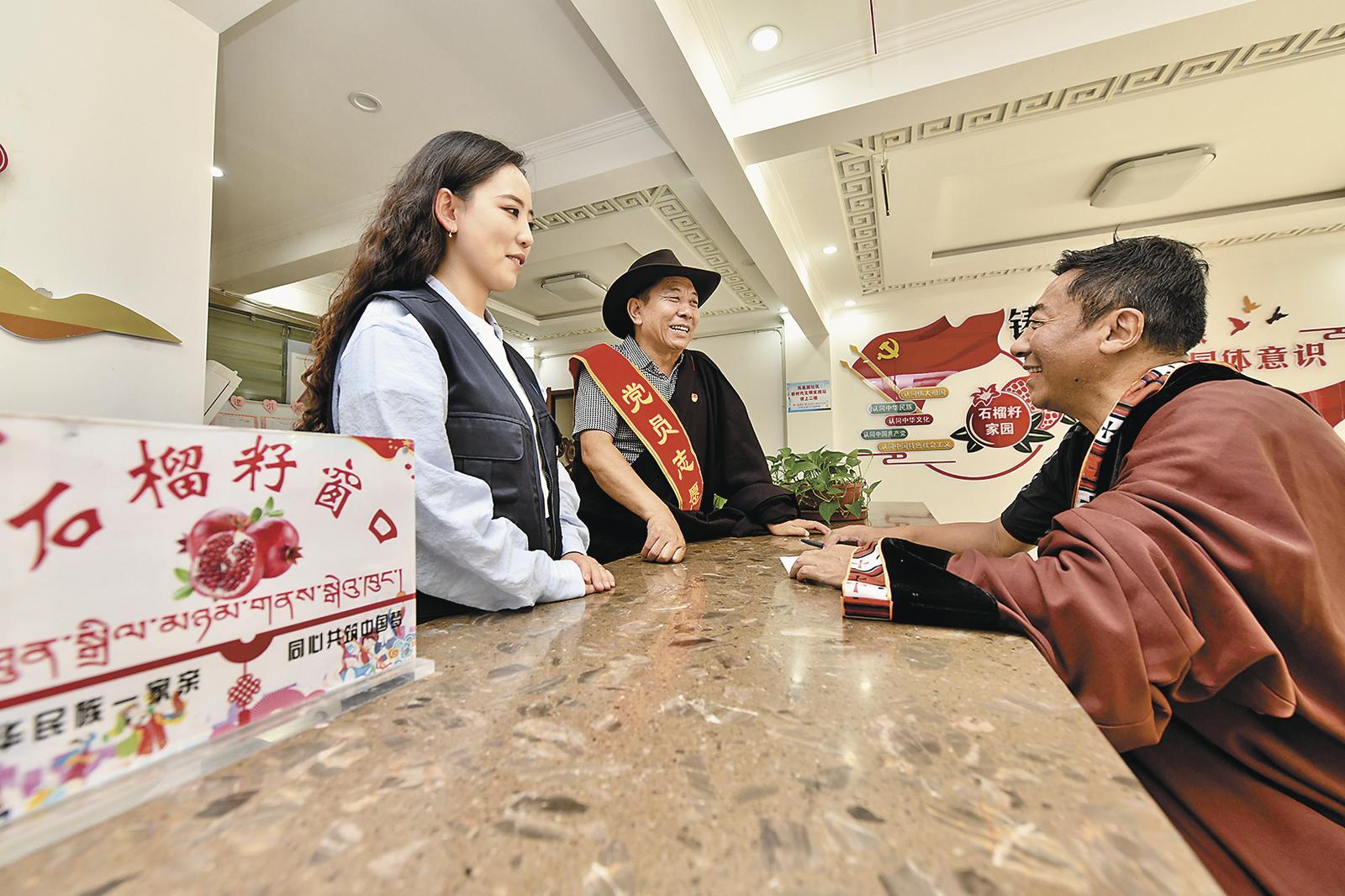 “你看,這是藏語版的宣傳冊。之前您反映惠企政策的宣傳手冊看不懂,青海警官職業(yè)學院的老師為我們做了翻譯,這下能看懂了吧!”在位于西寧市城中區(qū)南灘街道建新社區(qū)的扎閣林民族歌劇院內(nèi),社區(qū)黨委副書記楊麗手拿雙語宣傳冊,開心地找到了經(jīng)理完么才讓。