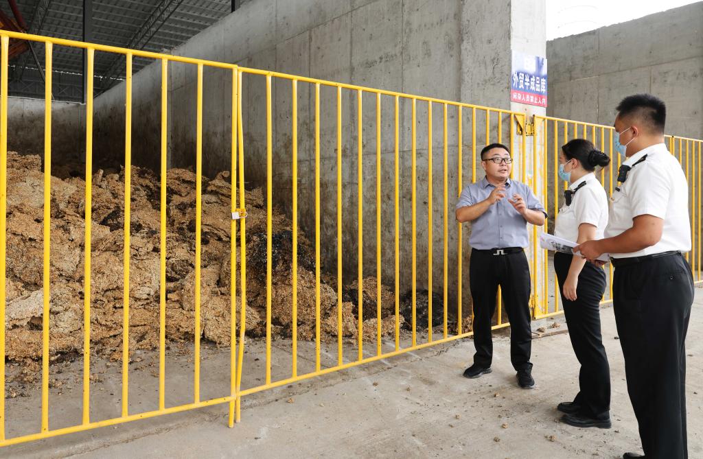 5月28日,在海南象元實業(yè)有限公司,企業(yè)人員向??诤jP所屬三亞海關關員介紹企業(yè)進口的橡膠原材料。新華社記者金皓原 攝