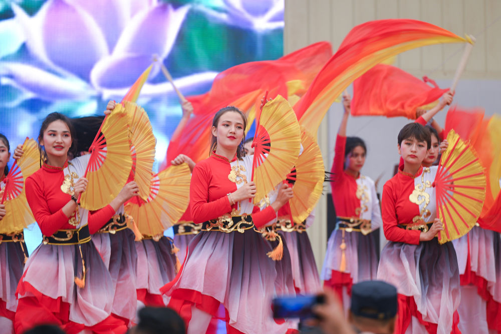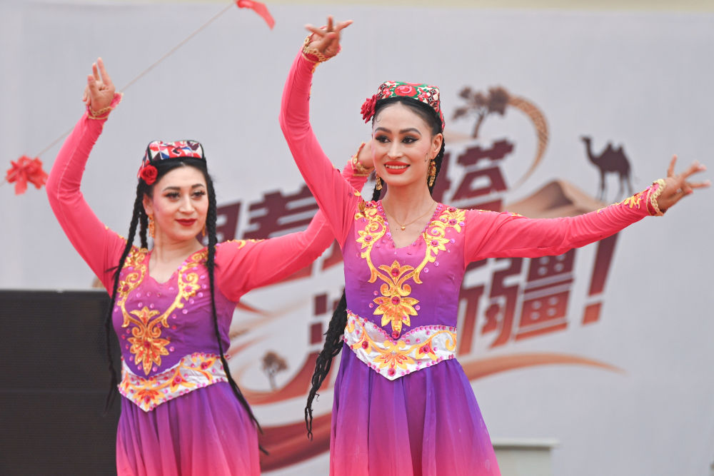 2025年5月30日,2025中國環(huán)塔國際拉力賽新疆喀什地區(qū)麥蓋提賽段歡迎晚會(huì)上的歌舞表演。新華社發(fā)(環(huán)塔組委會(huì)供圖)