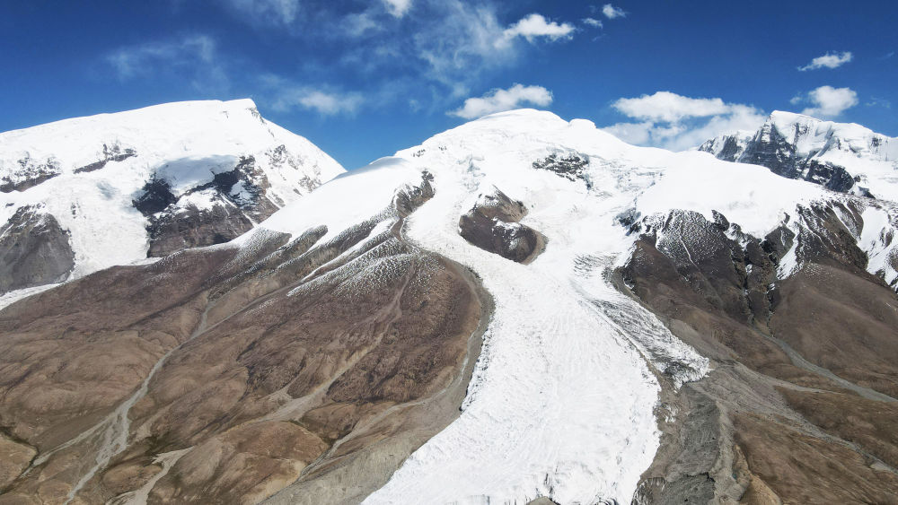 這是在新疆塔什庫爾干塔吉克自治縣慕士塔格冰川公園拍攝的冰川景觀(2023年9月6日攝,無人機(jī)照片)。新華社記者 金皓原 攝