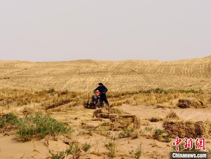 圖為治沙人付俊年熟練地操控著壓沙機,穩(wěn)步前行。徐曉玲 攝